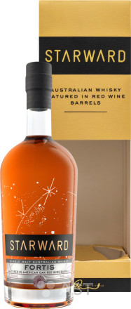 Способ производства: starward Fortis - односолодовый виски, изготавливаемый из австралийского ячменя и крафтовых пивных дрожжей для придания дополнительного вкуса. Разливается без холодной фильтрации при крепости 50% для сохранения насыщенности, чтобы можно было точно представить «виски из бочки». Starward Fortis выдерживается в бочках из 100% американского дуба, чтобы придать полный, богатый вкус и усилить древесные и ванильные оттенки виски. Fortis также может похвастаться сочными нотами красного вина благодаря бочкам, в основном из виноделен долины Баросса, где производят мощные вина из сортов винограда шираз и каберне. Некоторые бочки обуглены для сложности, большинство из них свежие, что придает Starward Fortis интенсивный аромат красного вина, который впитался в структуру бочек.